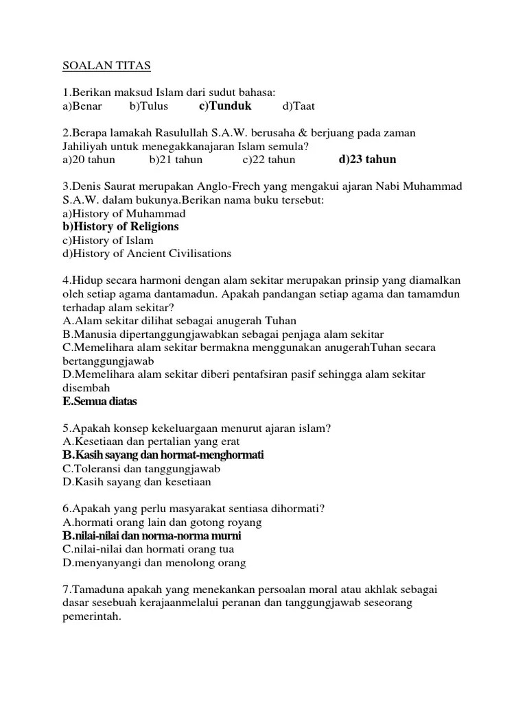Peranan Agama Dalam Tamadun Titas : Bukti Agama Berperanan Dalam Pembangunan Tamadun Manusia. C) tunduk d) taat a. Berikan maksud islam dari sudut bahasa: Tamaduna apakah yang menekankan persoalan moral atau akhlak sebagai dasar b) tulus sesebuah kerajaan melalui peranan dan tanggungjawab seseorang pemerintah. Menyanyangi dan menolong orang 1.